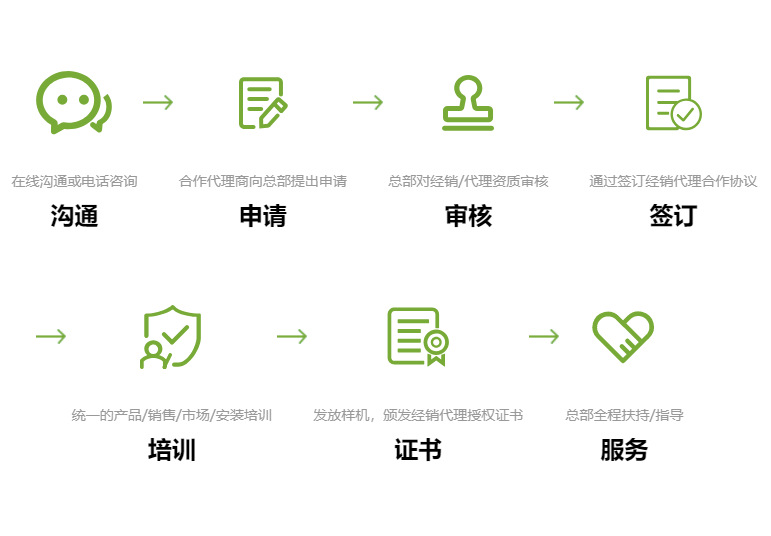 科學(xué)保證客戶利益;提供樣機(jī)保證貨源;專業(yè)技術(shù)培訓(xùn)支持;高效物流配送服務(wù);營銷策劃運(yùn)營指導(dǎo);銷售策略團(tuán)隊(duì)支持;售后跟蹤質(zhì)量保障;資源共享相互扶持。